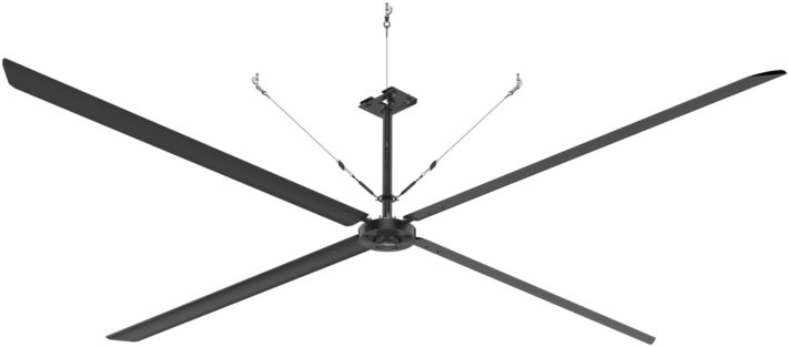 倉庫や工場、物流基地といった、特に広い空間における空気循環と空調効率化を目的に開発された、ハンターの大型HVLS(High Volume Low Speed)インダストリアルファン、ECOシリーズの羽根径20フィートモデルです。